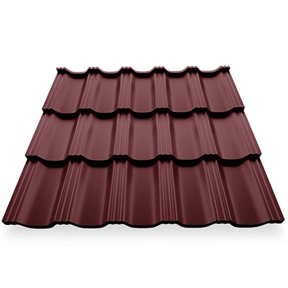 Фирменная особенность профиля ГЕРМАНО — симметричная волна с тройным ребром жёсткости и увеличенным боковым нахлёстом, что повышает герметичность стыков и устойчивость кровли к задуванию снега и дождя. Гибридный формат (листовой и модульный) позволяет использовать один и тот же профиль для новых крыш и ремонтов, подбирать оптимальную длину под скаты и при этом экономить материал за счёт рационального раскроя и минимизации отходов. Металлочерепица ГЕРМАНО подходит для кровли частных домов, коттеджей, дачных построек и малоэтажных коммерческих объектов с уклоном от 14° и монтируется по стандартным схемам устройства металлочерепичной кровли.